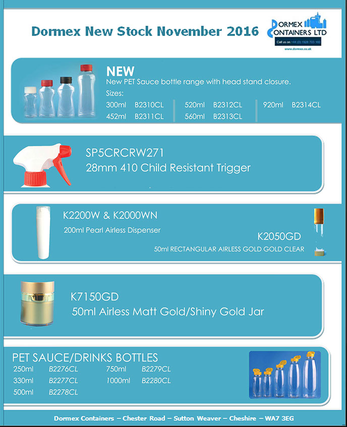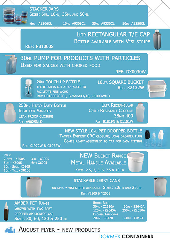 Dormex is also an official stockist and distributor for RPC Containers and for Calmar, a manufacturer of trigger sprays and dispensers. Numerous household names are also included in our customer base.